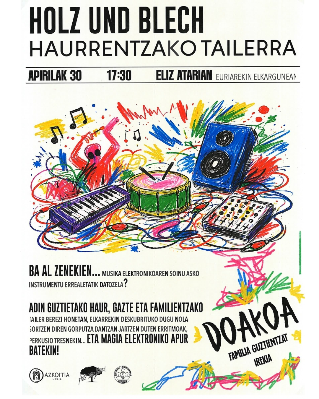 Elkarrekin deskubrituko dugu nola sortzen diren erritmoak, perkusio tresnekin… eta magia elektroniko apur batekin! 🎵